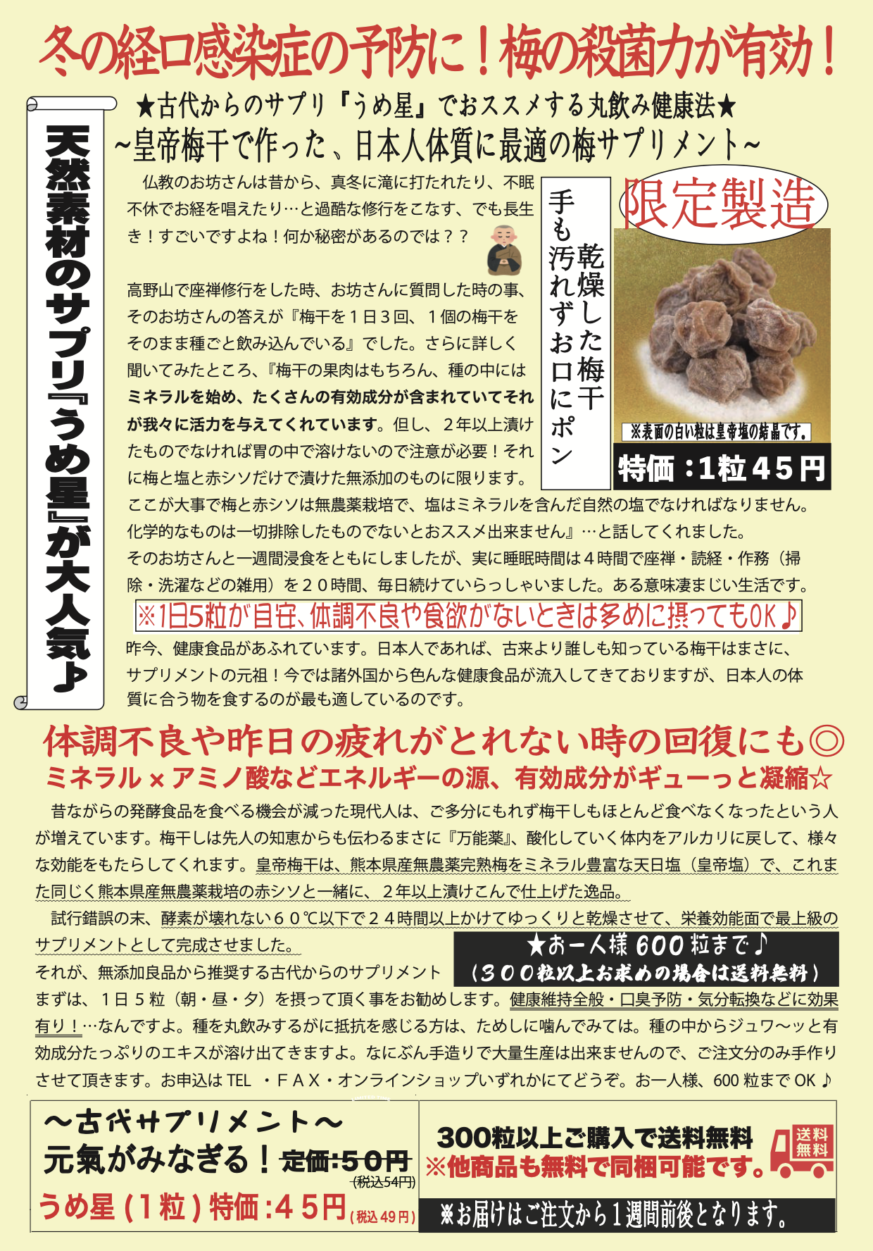 それが、無添加良品から推奨する古代からのサプリメント「うめ星」です。