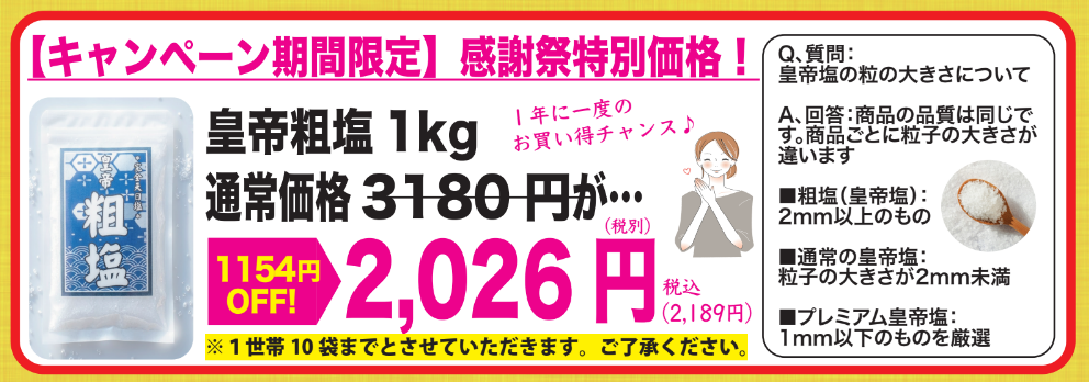 【期間限定】皇帝粗塩1kg(感謝祭特別価格)